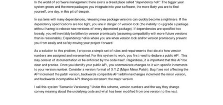 원문: http://semver.org/ 소프트웨어 관리라는 세상에는 ‘의존성 지옥’이라는 아주 두려운 곳이 있다. 시스템이 커 갈수록 더 많은 패키지를 소프트웨어에 통합하게 되고, 어느 날 자신을 돌아봤을 때는...